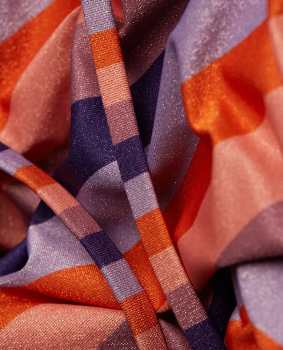 Vif et éclatant, le maillot de bain de maternité Rainbow est l’idéal pour un été sous le signe de la couleur. Les rayures, mélangent de différents tons d’orange et de violets, et sa touche de lurex apportent une touche énergique et brillante à ce maillot de bain coloré.